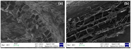 SEM images of (a) Brewers’ Spent Grain and (b) hemp shives.