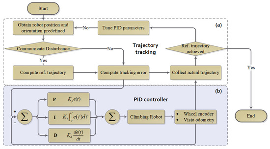 The architecture of PID-based trajectory-tracking controller; (a) Trajectory-tracking architecture; (b) PID controller.