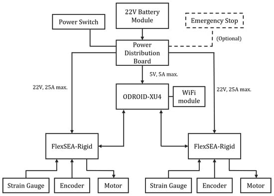 - Duval, J.-F.; Herr, H.M. FlexSEA: Flexible, Scalable Electronics Architecture for Wearable Robotic Applications. In Proceedings of the 2016 6th IEEE International Conference on Biomedical Robotics and Biomechatronics (BioRob), Singapore, 26–29 June 2016. [Google Scholar] [CrossRef]