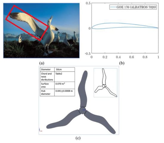 - Robles, G.E.; Luna, E.C.R.; Tayactac, R.G.; Honra, J.P.; Calderon, A.D. Design and Aerodynamic Analysis of a Bio-Inspired HAWT with Albatross and Stork Airfoil for Low Wind Velocity Using CFD. In Proceedings of the 2022 6th International Conference on Power and Energy Engineering (ICPEE), Shanghai, China, 25–27 November 2022; IEEE: New York, NY, USA, 2022; pp. 37–46. [Google Scholar] [CrossRef]
