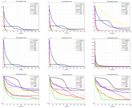 In this section, we will use other functions to compare with MFSMA. For the numerical algorithm, we use many benchmark functions for comparison. The computer environment is as follows: the operating system is Windows 11, the CPU is Inter i7-13700H, memory is 16 GB. The algorithms for comparison were coded by MATLAB R2021a.