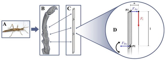 11]. This movement is facilitated by two antagonistic muscles (protractor and retractor) in spiders, but in insects, the simplest case occurs—one tendon supplemented by a few muscles differently arranged depending on the species (altogether, they represent the