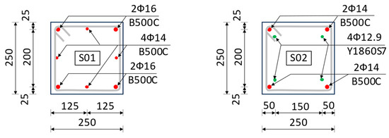 Nowadays, the most used and financially accessible building materials are concrete and steel. Concrete has physical (high resistance to fire and aggressive environment, medium specific weight, low thermal expansion, etc.) and mechanical properties (sufficient compressive strength, favorable elasticity mode, etc.) that make it recommendable for widespread use in load-bearing structures. However, the low tensile strength of concrete is an impediment, involving its association with other reinforcement materials (with tensile strength 100 to 1000 times that of concrete), resulting in a composite material, i.e., reinforced concrete [10]. An excellent reinforcement in concrete is steel in the form of ribbed bars. Steel has a thermal expansion compatible with that of concrete and good adhesion when embedded. When reinforced concrete structures exhibit deformations above the serviceability limits, or when the goal is to reduce the dimensions and the elements’ own weight, active reinforcement (pre-tensioned or post-tensioned) can be used in association with the concrete, thus resulting in a composite material like the first but with superior mechanical performance, i.e., prestressed concrete. In the modern era, engineering solutions for the reinforcement (using passive reinforcement) of reinforced concrete have been studied and then successfully implemented by engineers and professors such as Emil Mörsch and Fritz Leonhardt [11,12,13,14,15,16]. Regarding prestressed concrete, prestressing engineering solutions were studied and successfully applied in construction by the pioneering French builder Freyssinet and immediately continued by his successors [17,18,19]. Since the beginning of the modern use of reinforced concrete, the strut-and-tie model and the stress-field model have been used as design principles, with reinforcements positioned inside the concrete member where tensile stresses would exceed the tensile strength of the concrete.