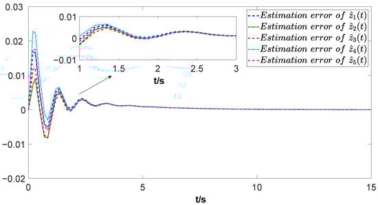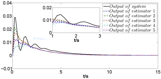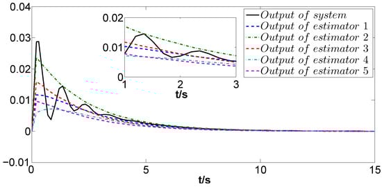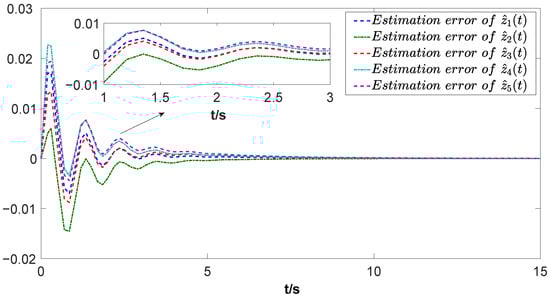 By using the Schur complement, it follows from Equations (13) and (14) that V ˙ ( e ( t ) ) < 0 , which means that the estimation error Equation (10) with ω ( t ) = 0 and v τ ( t ) = 0 is asymptotically stable.