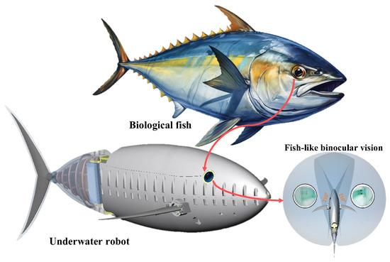 Imitating human eye perception and with an understanding of vision, human-like stereovision has been designed and used for robust perception in vehicles [17]; in underwater environments, inspired by the fish eyes of biological fish, fish-like vision systems are easier to deploy on robots with fish-like streamlined shapes and can achieve a wider field of view at a lower cost.