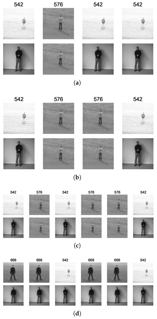KTH [49] is a video action recognition dataset that contains videos of six activities (walking, jogging, running, boxing, hand waving, and hand clapping) performed by 25 subjects. The actions are captured in four different scenarios: outdoors, outdoors with scale variation, outdoors with different clothes, and indoors. The dataset contains 599 videos comprising 289,715 frames and 11,375.32 s captured at 25 fps and 160 × 120 pixels.