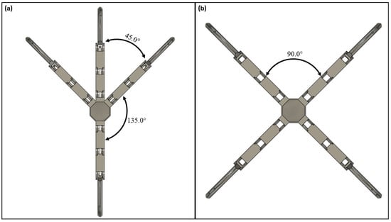 Development of the zygodactyl base design adopted a similar approach. With a two-in-front and two-in-back configuration, each digit had a spacing of approximately 90 degrees. This created a symmetrical bird claw as seen in Figure 2b. This research designed a fully symmetrical bird claw design, a slight modification from a traditional zygodactyl bird claw seen in nature. Zygodactyl claws in nature (Figure 1b) do not follow a symmetrical digit arrangement compared to our zygodactyl model, which has equidistant digits. Biomimicry does not require the exact replication of biological elements found in nature and rather focuses on the functional aspects of the design [8,23,24]. This model was adapted to mimic the more symmetrical quality of the zygodactyl claw to evenly support a grasped object on all sides.