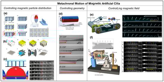 - Cui, Z.; Wang, Y.; Zhang, S.; Wang, T.; den Toonder, J.M. Miniaturized Metachronal Magnetic Artificial Cilia. Proc. Natl. Acad. Sci. USA 2023, 120, e2304519120. [Google Scholar] [CrossRef]