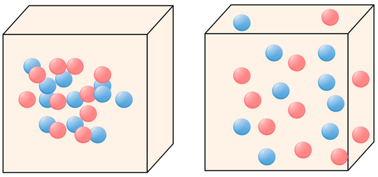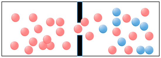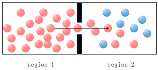 Fick’s law describes the fundamental principle of diffusion of substances in physics and chemistry. Therefore, Fick’s law algorithm simulates Fick’s law process of substance diffusion [27]. According to Fick’s law, the greater the concentration gradient, the faster the diffusion rate [29]. Therefore, Fick’s algorithm changes the concentration relationship between the two sides by adjusting the position of molecules in different regions to ensure a stable position of the molecules, thus realizing the optimization process. Figure 2 shows the schematic diagram of molecular movement in Fick’s law.