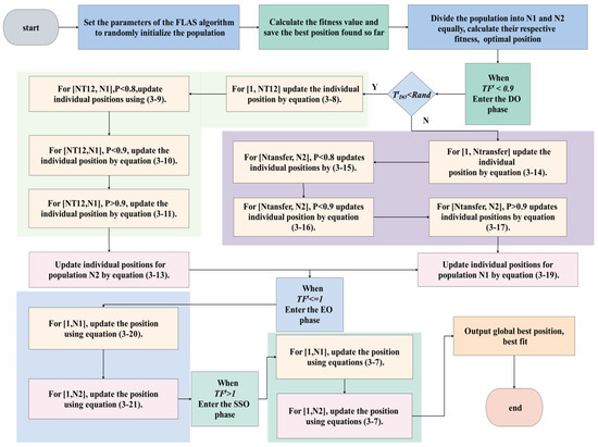 The FLAS improved algorithm is established by introducing the differential variation strategy, Gaussian local variation strategy, interleave-based comprehensive learning strategy, Levy flight strategy, and the global search strategy in the migration phase of the Gull algorithm. The FLAS algorithm process is as follows:
