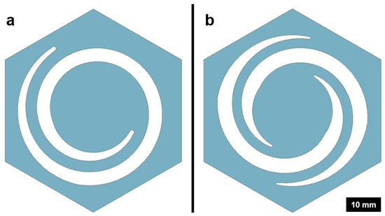 The first selection of the technical pit designs is then evaluated and subsequently optimized using finite element methods (NX Simcenter Nastran/CFD, SOL601 and 106) to look for (i) linear and predictable closing movement and (ii) the adjustable pressure (adjustable by dimensions other than diameter of the whole valve (thickness, spiral length, and radius)) necessary to close and/or open the valve. All simulations are performed with Simcenter Nastran using the solution types SOL601 and 106 for a material thickness of 0.5 mm to 1 mm and various polymers at pressures between 0 Pa and 70 Pa. These conditions equal a wind speed of approximately 10 m/s or 35 km/h, i.e., when the switching behavior is most desired (Figure 2).