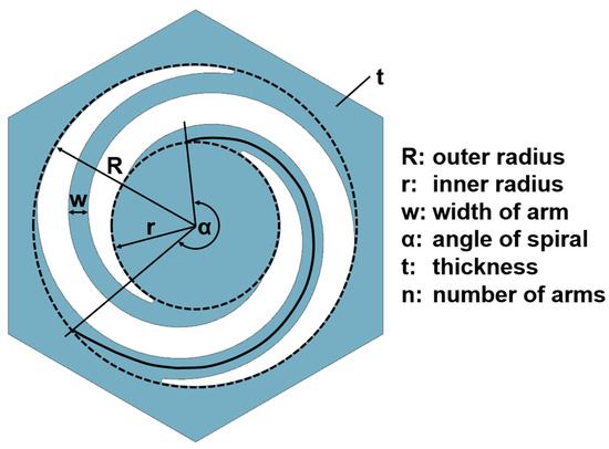 The modular design allows for high adaptability to all kinds of application cases. In consequence, we developed a design formula to aid in dimensioning only through the adjustment of geometric parameters (Figure 14). Additional influence was exerted by the Young’s modulus of the material used in the specific application case. Next to thermoplastic polyurethane, metals and ceramics are also possible [22,23].