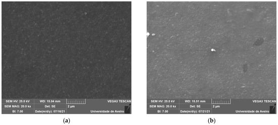 The SEM micrographs, represented in Figure 5, reveal spherical inclusions in the amorphous matrix in both the free and fracture surfaces. The morphology confirms its glassy structure.