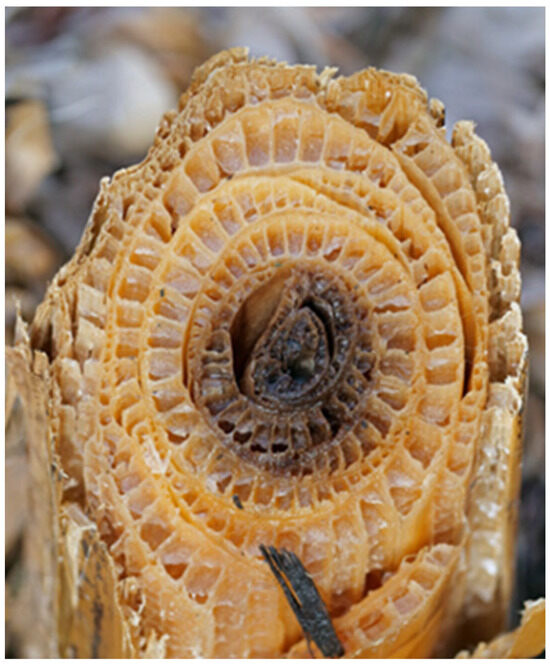 Figure 1. Photograph of the cut surface of the pseudo-stem of a banana plant. Reprinted from [15].