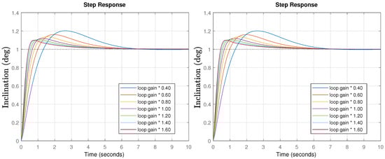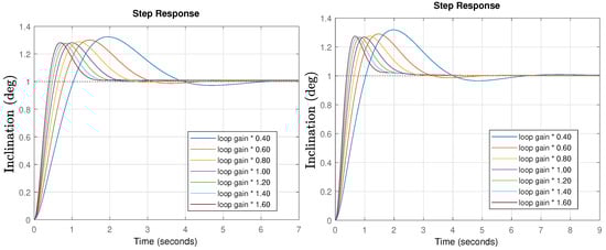 Once the controllers are designed, time response simulations for different gain values were performed. The results are shown in Figure 9.