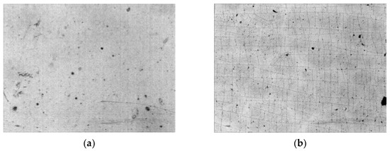Micro-photo of: (a) untreated PU film; (b) PU film treated by ion beam. The size of both images is 1.2 mm × 0.9 mm.