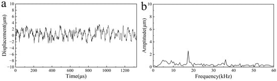 Vibration of the fixture. (a) Vibration displacement of the fixture, (b) vibration spectrum of the fixture.