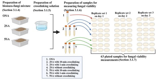 Fungal viability (assessing viable fungal spores) in biomass-fungi mixtures was evaluated using colony-forming units per plate (CFUs/plate). This method was also used by other researchers in their reported studies [56].