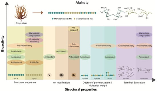 Dependency of inherent bioactivities of alginate on its structural properties.