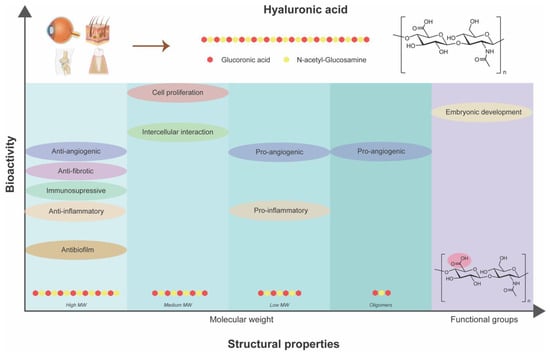 Dependency of inherent bioactivities of hyaluronic acid on its structural properties.