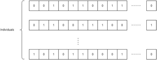 - Solution initialization: As a solution initialization strategy, we used the generation of random solutions. Since we were solving a binary problem, each decision variable was randomly assigned a value of 1 or 0.
