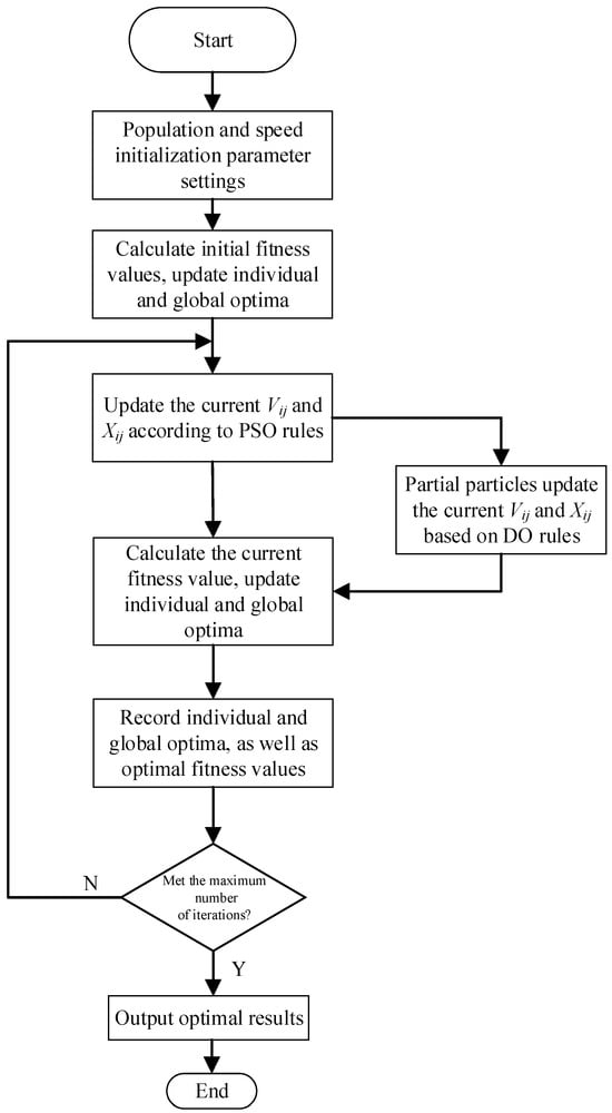 - Combining the particle-updating rules of the DO algorithm with the particle position and velocity-updating rules of the PSO algorithm, thereby expanding its search range in the solution space.
