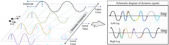 The periodic signal is effective guidance for the bipedal gaits [21]. In detail, the frequency, amplitude, and phase variables can influence the joint movement produced by the actor policy; hence, each single leg will reflect the corresponding routine. When two legs work together, an interchanged gait is produced, avoiding the occurrence of asymmetrical and strange gaits in training practice. However, the signals with fixed parameters are still unable to cope with various external disturbances well, especially the fixed frequency. Therefore, the RL-based stimulus frequency policy is proposed to provide dynamic frequencies that are equivalent to the latent feature that is contained by the adaptive gaits.