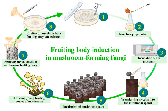 Creating optimal conditions is pivotal for the successful production of MBCs [137]. The recommended conditions encompass various factors, including temperature, humidity, aeration, gas exchange, incubation time, and light exposure.