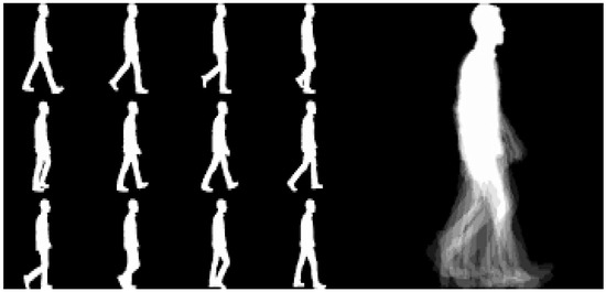 - Li, Z.; Xiong, J.; Ye, X. A new gait energy image based on mask processing for pedestrian gait recognition. In Proceedings of the 2019 International Conference on Image and Video Processing, and Artificial Intelligence, Shanghai, China, 23–25 August 2019; International Society for Optics and Photonics: Bellingham, WA, USA, 2019; p. 113212A. [Google Scholar]
