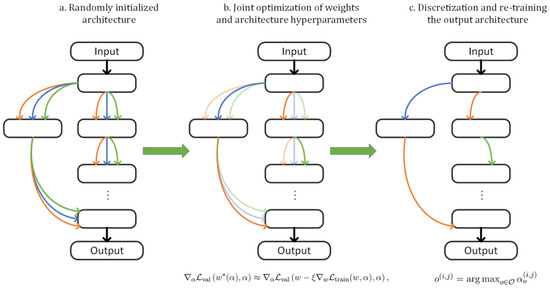 - Liu, H.; Simonyan, K.; Yang, Y. DARTS: Differentiable Architecture Search. arXiv 2019, arXiv:1806.09055. [Google Scholar]