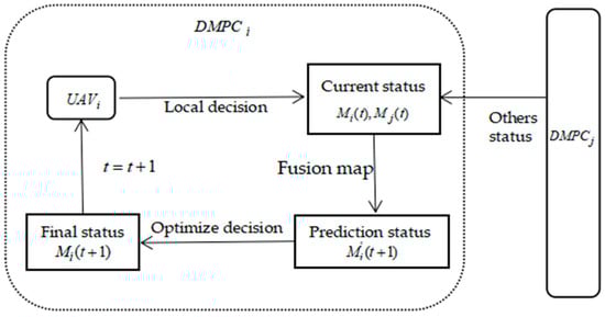 - Current status acquisition. Each UAVi obtains its current local environment map Mi(t) through local decision-making. Meanwhile, an environment map Mj(t) of other UAVj in time t can also be obtained through a communication network.