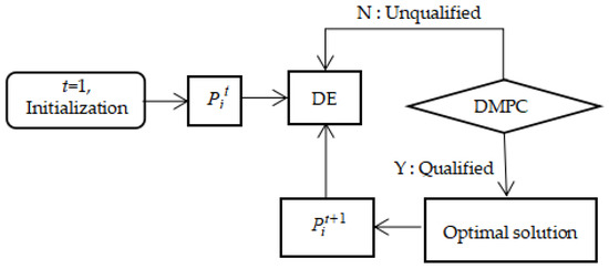 - Decision optimization. The proposed DE is used to optimize the current decision, i.e., path planning, according to the prediction state and constraint quantity, and to obtain the final decision Mi(t + 1) at time t + 1.