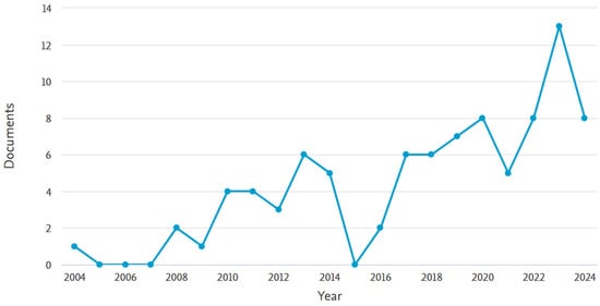 The results of the initial search through SCOPUS database using the keywords mentioned in the methodology showed a low number of publications during the period of 2000 until 2024, ranging between 1 and 13 publications per year, as shown in Figure 1. However, the topic under investigation is still relatively new and not thoroughly investigated. Overall, the accumulative total of the SCOPUS-indexed articles was 89 articles, of which a selection is examined and further discussed in this section.