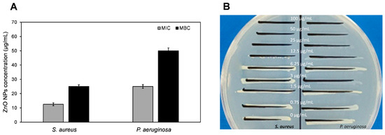 2.6. Antibacterial Activity and Minimum Inhibitory/Bactericidal Concentrations (MIC/MBC) of ZnO-NPs