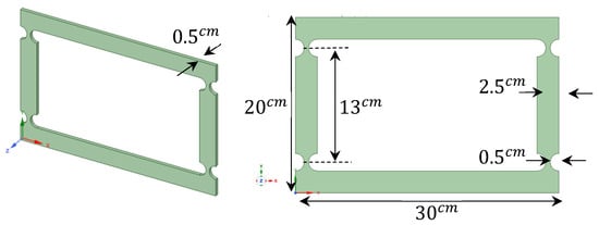 The compliant mechanism model in Ansys was meticulously crafted to accurately represent the intricacies of the four-bar system. This model allows us to simulate and analyze the behavior of the mechanism under varying loads and conditions. A visual representation of the four-bar compliant mechanism modeled in Ansys, and a detailed view of the specific dimensions are shown in Figure 10.