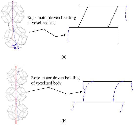 Assuming for simplicity that the soft voxelized leg is accurately controlled by the bending angle and further referring to the control method [24], a closed-loop dynamic controller for a soft voxelized leg can be introduced as follows: