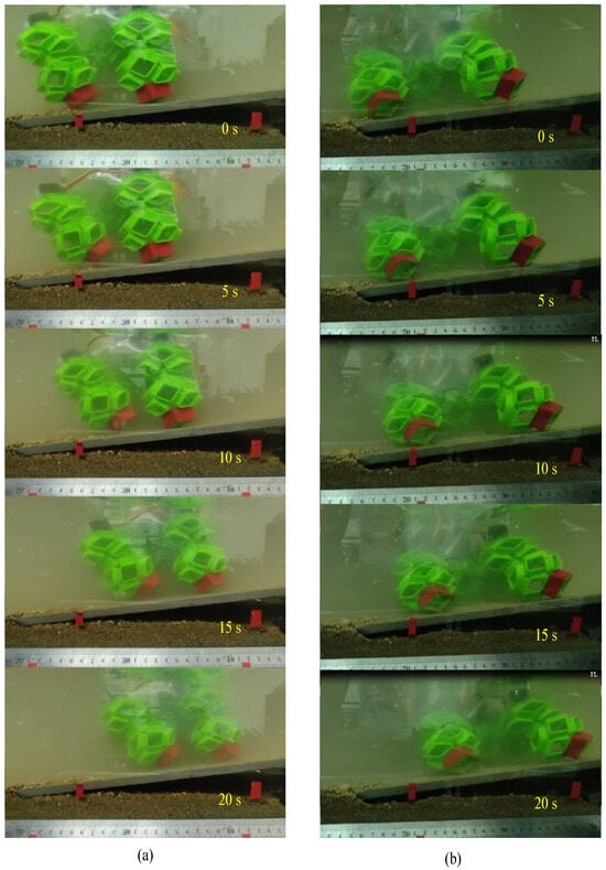 Underwater walking and crawling on a slope with the soft voxel-based robot. (a) Underwater walking on the slope; (b) underwater crawling on the slope.