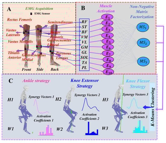 - d’Avella, A.; Bizzi, E. Shared and specific muscle synergies in natural motor behaviors. Proc. Natl. Acad. Sci. USA 2005, 102, 3076–3081. [Google Scholar] [CrossRef]