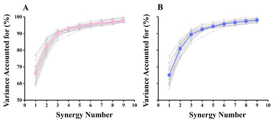 3.2. Selection of the Number of Synergies