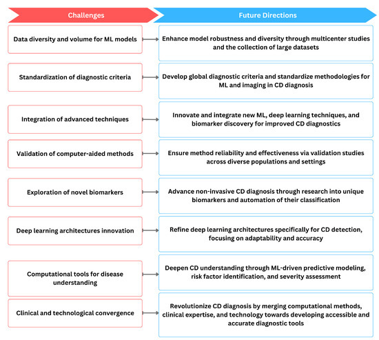 Recently, there has been a growing interest in harnessing the power of advanced technologies to improve the accuracy and efficiency of CD diagnosis [1]. Computer-aided diagnosis (CAD) systems, often utilizing artificial intelligence (AI) and machine learning (ML) algorithms, have emerged as promising tools in this context. These systems have the potential to analyze complex datasets, including genetic markers, serological data, and clinical symptoms, and provide more accurate and timely diagnoses. While some methods are promising, the road to establishing computer-aided CD diagnosis as a reliable diagnostic tool is still long, necessitating further research, validation, and integration into clinical practices.