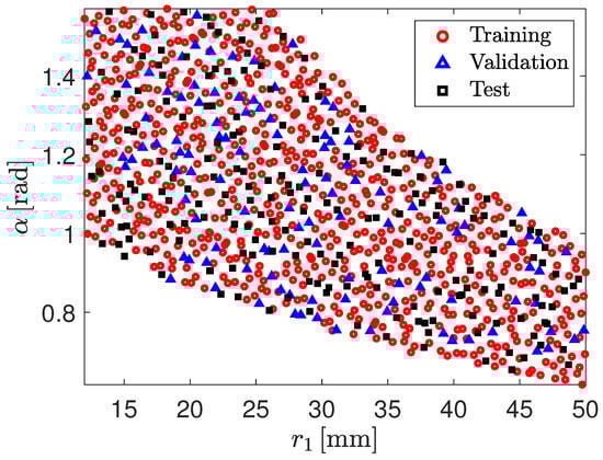 In this section, the NN-based surrogate models are presented and their predictive capability discussed. Each NN-based surrogate model is trained using data points derived FEA. Out of 1000 data points, 800 are used for training, with 680 allocated for training and 120 for validation. The remaining 200 experiments are used for testing. Those datasets are shown in Figure 9.