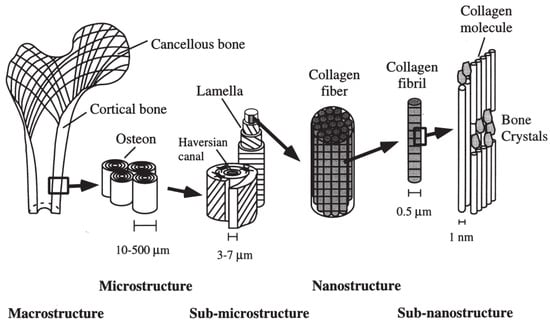 The hierarchical structure of bone. Adapted with permission. Ref. [113], 1998, Elsevier.