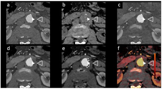 - Decker, J.A.; Bette, S.; Scheurig-Muenkler, C.; Jehs, B.; Risch, F.; Woźnicki, P.; Braun, F.M.; Haerting, M.; Wollny, C.; Kroencke, T.J.; et al. Virtual Non-Contrast Reconstructions of Photon-Counting Detector CT Angiography Datasets as Substitutes for True Non-Contrast Acquisitions in Patients after EVAR—Performance of a Novel Calcium-Preserving Reconstruction Algorithm. Diagnostics 2022, 12, 558. [Google Scholar] [CrossRef]
