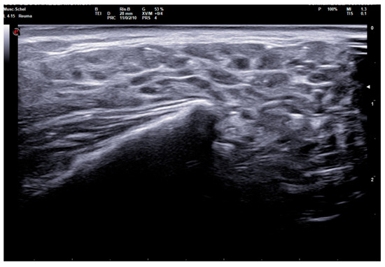This study has several limitations. Specifically, the study was conducted in a context of real clinical practice, so an assessment of intra- and inter-operator agreement is lacking. However, our diagnostic performance data are comparable with previous results [13,14,28]. Due to the same reasons, another limitation is lack of complete immunological data of SS patients. Moreover, no patient was classified as affected from secondary SS, preventing us from evaluating the diagnostic performances of SGUS in this subset. The only patient with peripheral synovitis (see Figure 5) could not be diagnosed with anything other than primary SS. In any case, previous studies demonstrated no significant difference in SGUS appearance between primary and secondary forms of SS [29].