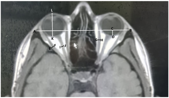 - The length of the interzygomatic line: This line was measured on axial images at the mid-globe position (Figure 1).