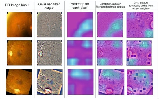 The class label is predetermined in the supervised learning method of classification. The model is trained using a training dataset with many images so that it can identify the category or class to which a test sample belongs if it receives any unknown sample images from the test dataset. The anticipated output is compared to the desired outcome to assess how effectively the model is trained. Due to recent improvements in high-performance computing hardware, deep learning is frequently employed in image classification work packages. To determine the severity of DR for a given patient’s retina image, we performed image classification using the sigmaX module to clarify DR images based on Gauss elimination on datasets of varying sizes (Figure 2). For this purpose, sigmaX acts as a coefficient, and in the function, the sample of the color spectrum acts as a power multiplier and is valued as “10” for the most stable resolution to all DR images. The Kaggle DRD was used to test a variety of pre-trained deep-learning CNN architectures.