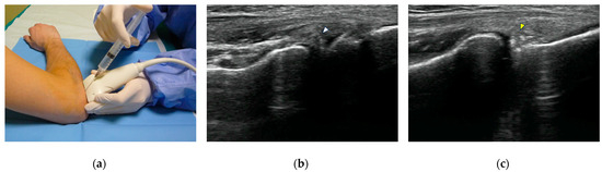 - Steinbach, L.S.; Schwartz, M. Elbow Arthrography. Radiol. Clin. N. Am. 1998, 36, 635–649. [Google Scholar] [CrossRef]