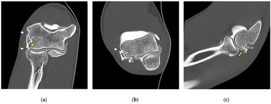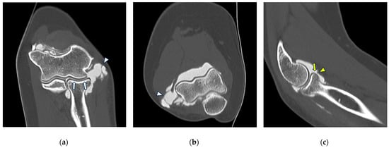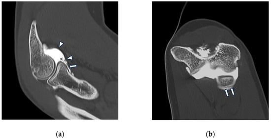 - Delport, A.; Zoga, A. MR and CT Arthrography of the Elbow. Semin. Musculoskelet. Radiol. 2012, 16, 015–026. [Google Scholar] [CrossRef]