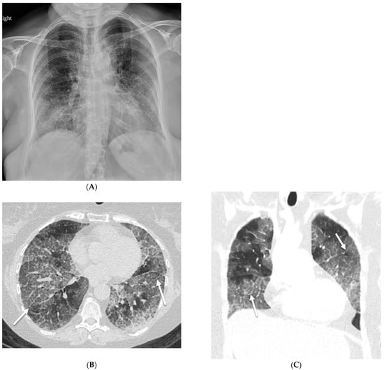 - Koo, H.J.; Lim, S.; Choe, J.; Choi, S.-H.; Sung, H.; Do, K.-H. Radiographic and CT Features of Viral Pneumonia. Radiographics 2018, 38, 719–739. [Google Scholar] [CrossRef]