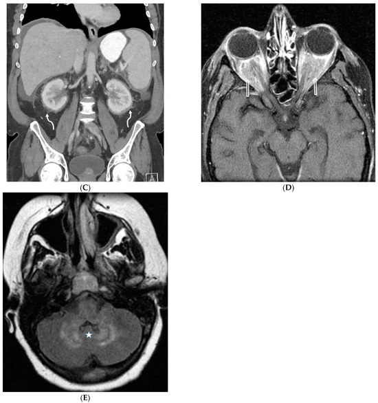 - Nguyen, H.N.; Salman, R.; Vogel, T.P.; Silva-Carmona, M.; DeGuzman, M.; Guillerman, R.P. Imaging findings of COPA Syndrome. Pediatr. Radiol. 2023, 53, 844–853. [Google Scholar] [CrossRef] [PubMed]